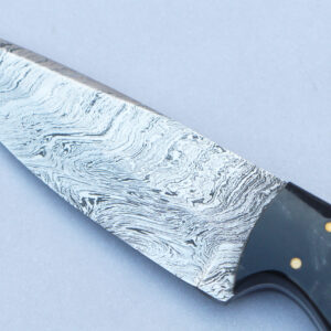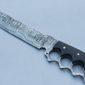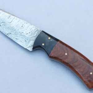 Marz Damascus steel knife Handmade Damascus steel Fire pattern Overall length: 8.5 inches Blade length: 4 inches Handle material: Bull horn, indian wood it comes with leather cover Please ...