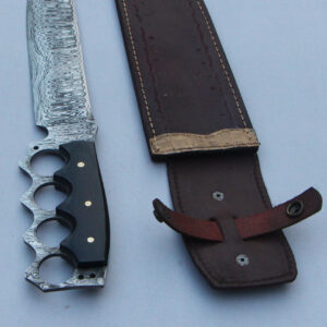 Marz Damascus steel punch knife Handmade Damascus Leader pattern overall length: 15 inches Blade length: 10 inches Handle material: Micarta it comes with leather cover Please feel free to ...